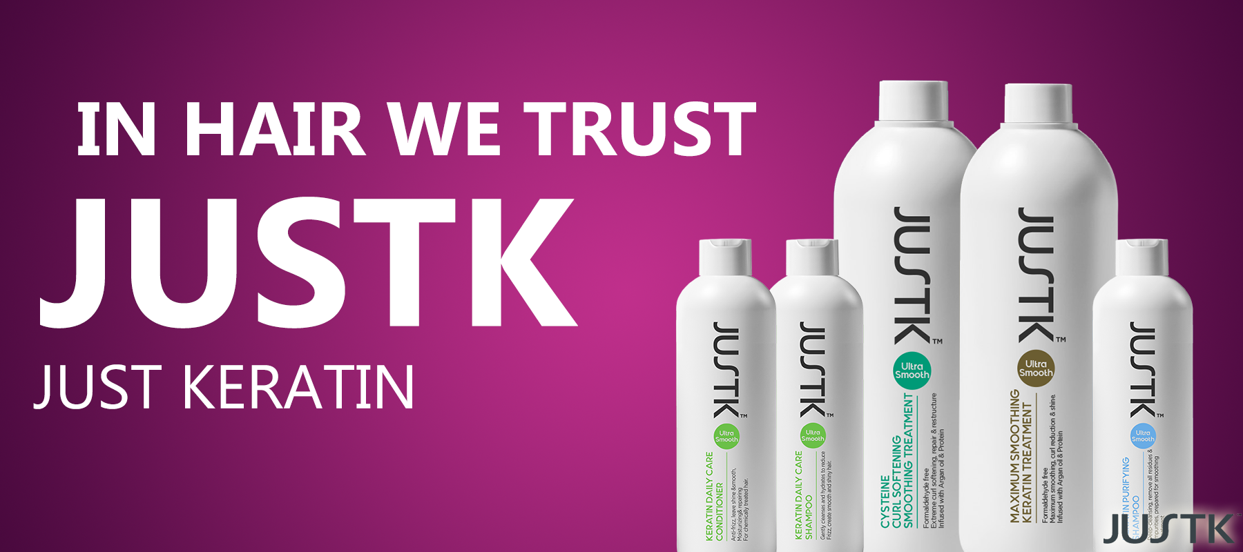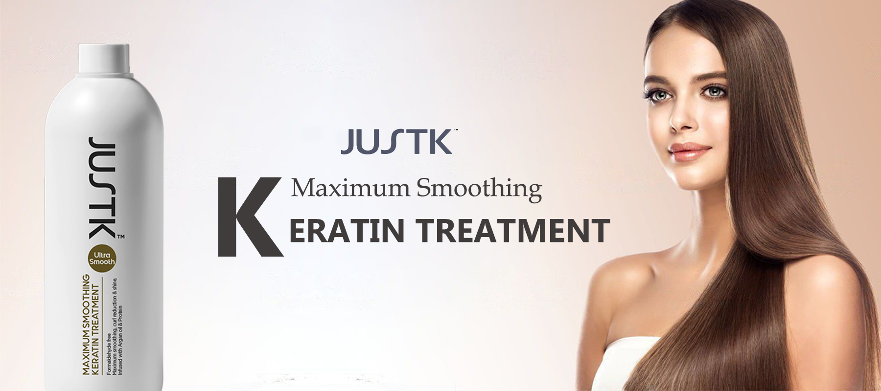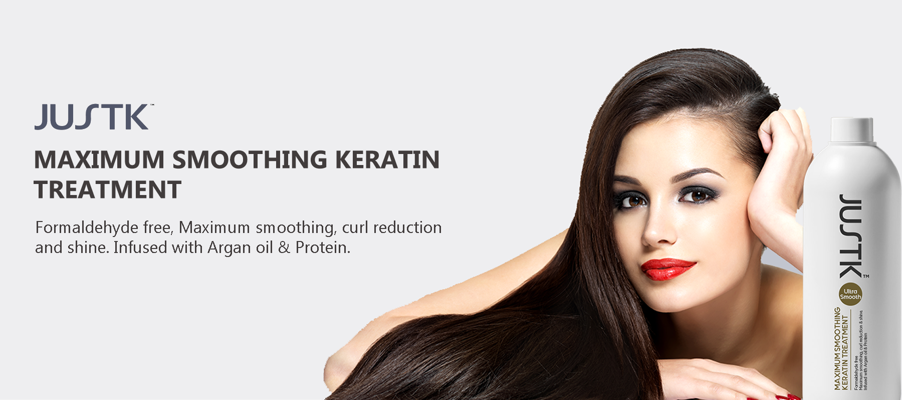JUSTK Maximum Smoothing Keratin Treatment is a safely smoothing treatment. This revolutionary no formaldehyde smoothing system infuses unique amino acids, keratin, and argan oil into the hair’s cuticle. The process safely turns frizzy, curly hair into straight, soft, and shiny. Superior curl reduction, shine, and smoothing.